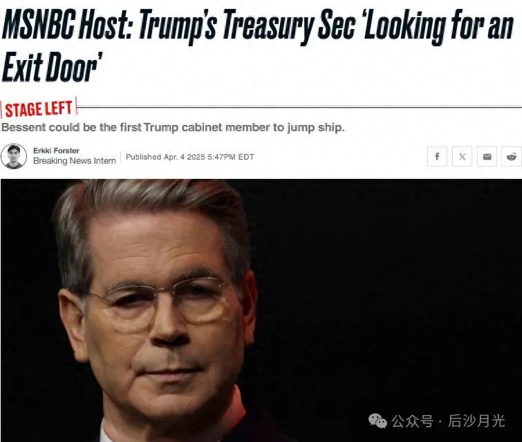 由於貝森特無法忍受特朗普政府“荒謬的關税算法”,已打算辭職。