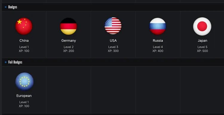 每級徽章對應着國家的國旗,很多圈外人看到了也很樂意收集