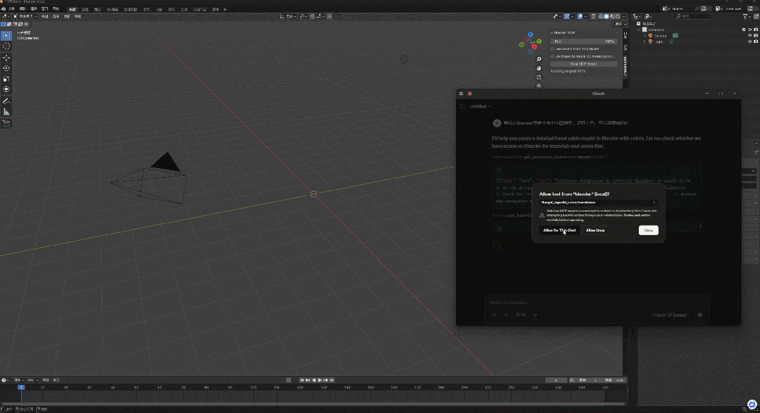 消息一發送,它二話不説就開始操作 Blender ,創建幾何體、調整參數、設置材質… 幾分鐘後,模型直接送到我眼前了。別的不説,能做出來,就已經比我強了。