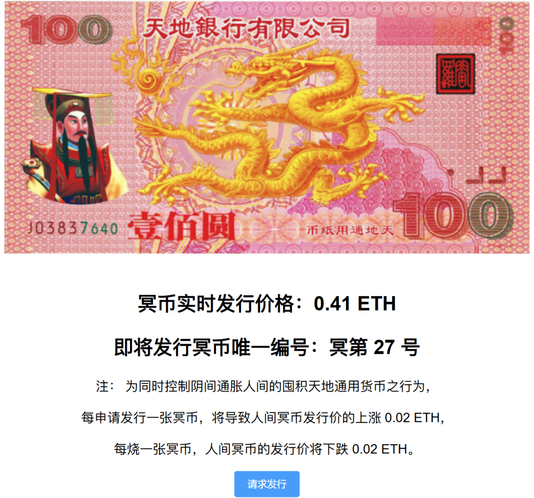 早在2018年,程序員Delton Ding開發出了一套**“以太冥幣”**系統,旨在從根本上杜絕假冥幣干擾陰間金融秩序,同時緩解陰間的通貨膨脹情況。