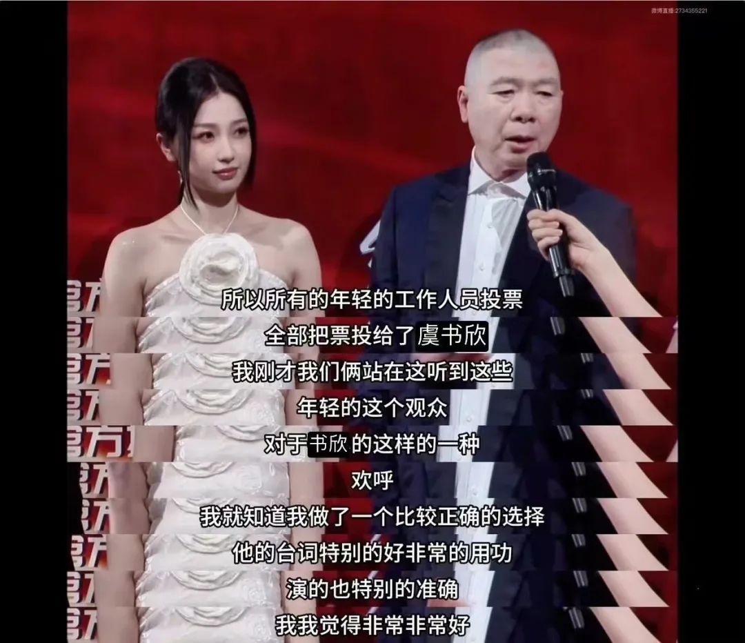 就像《非誠勿擾3》時,他大誇特誇虞書欣,説“她的台詞特別好特別用功,演得也特別準確”,你其實很難説這是單純的客套,它更像是一個老年人自以為年輕人喜歡什麼,便站在“正確”一端的做法。
