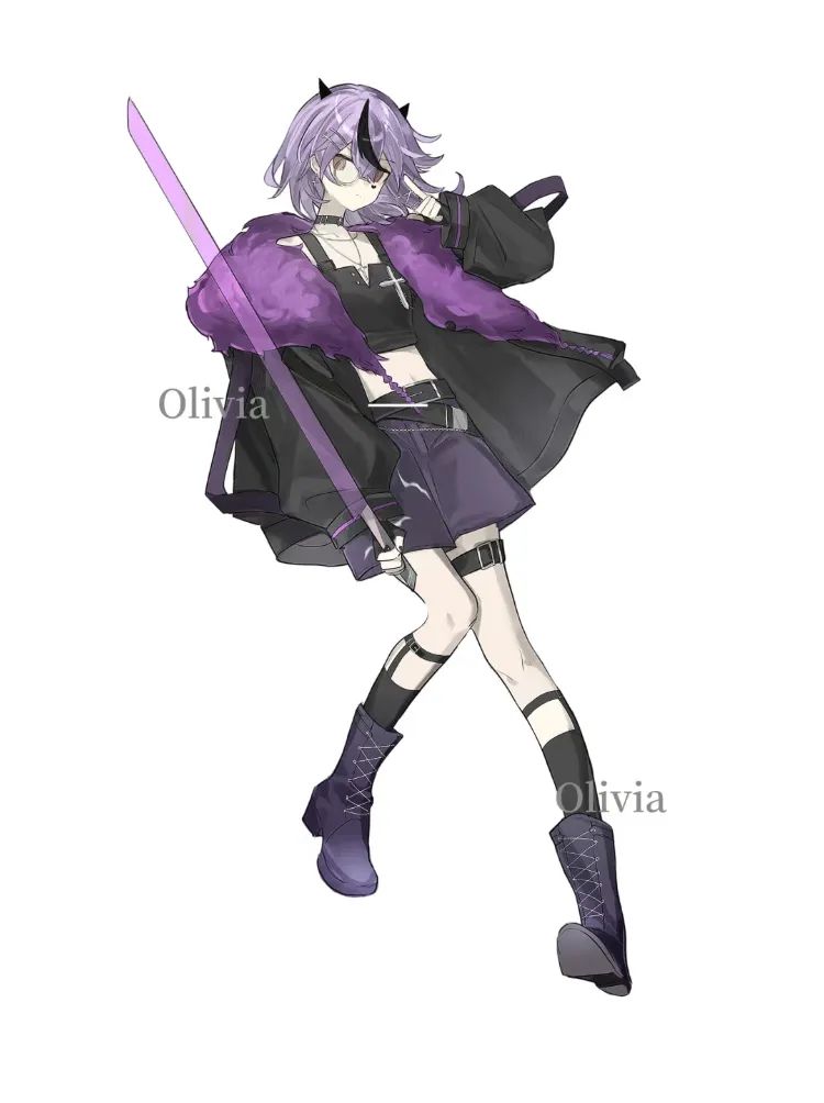 Bonny的OC名字為Olivia,她紫發紅眸,穿着領口綴着紫色皮毛的黑色皮衣,腳踩黑色高跟皮靴。