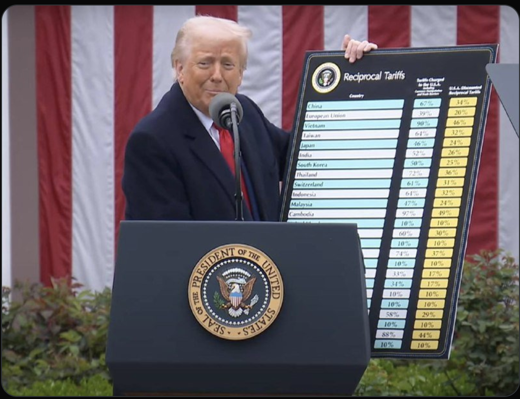 所以,依我看,未來一段時間內,解放軍針對台灣的行動大概率會採取 “輿論 + 演習” 的組合策略。我們在氣勢上持續壓制 “台獨” 勢力,通過社交媒體等渠道高調展示統一決心,塑造堅定的國家意志,但不會貿然發動武力。原因在於,當前國際局勢極為複雜,日本、菲律賓、印度等周邊不安定因素眾多,烏克蘭戰火仍在燃燒,一旦貿然開戰,地區局勢將難以控制。再者,中國有 3.2 萬億外匯儲備存於美國,一旦爆發戰爭,這些儲備極有可能被凍結,沿海發達地區也會遭受嚴重牽連。我們的目標是以最小代價實現台灣迴歸,絕不能損害同胞利益。再把目光轉向美國那荒謬的 “對等關税” 政策。以中國為例,特朗普宣佈的 “對等關税” 算法令人匪夷所思。並非簡單的税率疊加,而是在原有 20% 關税基礎上新增 34% 的懲罰性關税,實際總税率高達 54%。這一政策如同一記重錘,重重砸向中國對美出口的核心商品,像機電產品(佔中國對美出口的 46%)、傢俱玩具(17%)和紡織品(12%)等。根據美國商務部數據,2024 年中國對美出口額為 4338 億美元,若按 54% 税率計算,美國消費者每年購買中國商品得額外多掏約 2343 億美元的關税成本,平均到每個美國家庭,年均增加 1780 美元開支。這無疑是在公然增加美國民眾的生活負擔,特朗普卻宣稱是為了美國好,實在讓人難以理解他的邏輯。