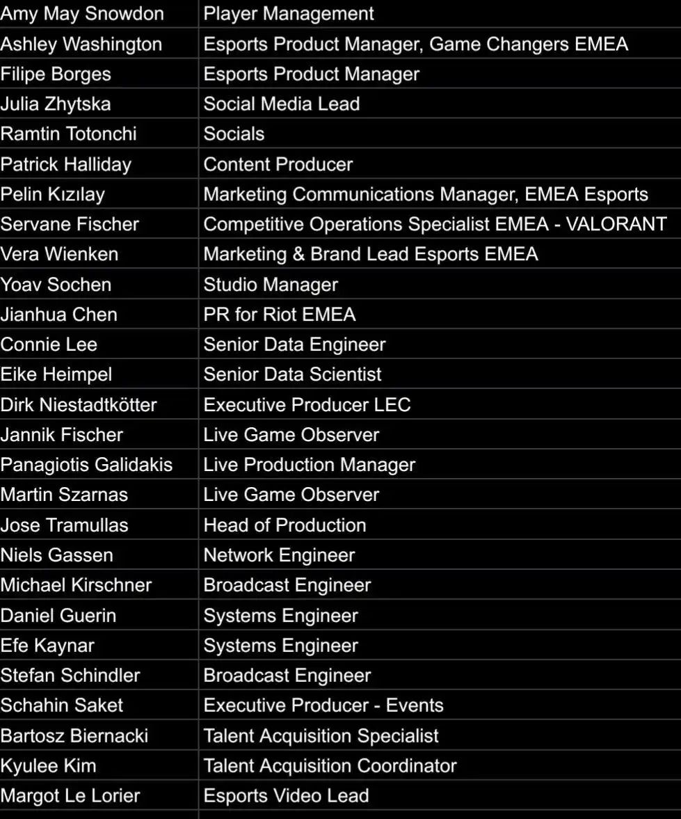 以LEC為例,根據記者Richard Lewis公佈的不完全統計,歐洲地區被裁員至少30人,其中包括直轉播崗位上的4人。