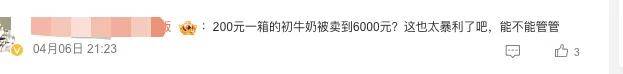 「200元一箱的初牛奶被賣到6000元?這也太暴利了吧,能不能管管」