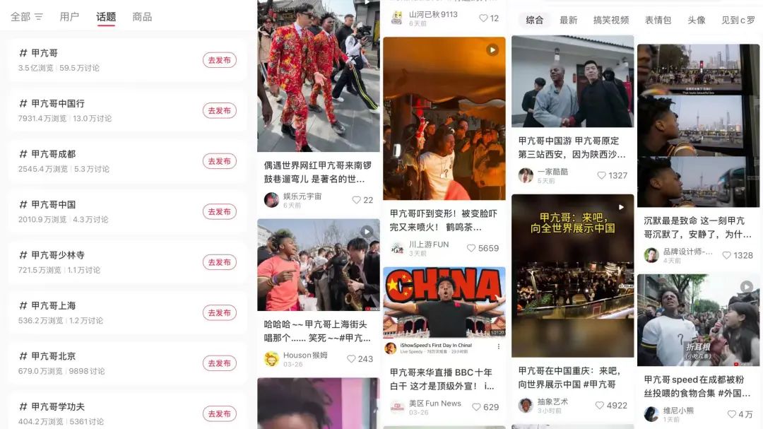 Speed中國行雖然在外網直播,但即時的圖文路透在小紅書引發討論,#甲亢哥中國行 話題瀏覽量已超過7930萬,#甲亢哥 個人話題討論量超過59萬。許多小紅書用户曬出了偶遇、合影的片段表示歡迎,也有不少用户自發分析Speed中國行爆火的原因。