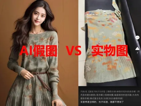 而這一表象背後,其實是黑心商家利用AI進行低成本P圖,擠壓合規企業生存空間的殘酷現實——AI假圖降低了不法商家跨平台拿來主義的成本,讓那些在原創設計上投入心血,花錢請模特實拍商品的好商家寒了心,最終導致劣幣驅除良幣的局面。