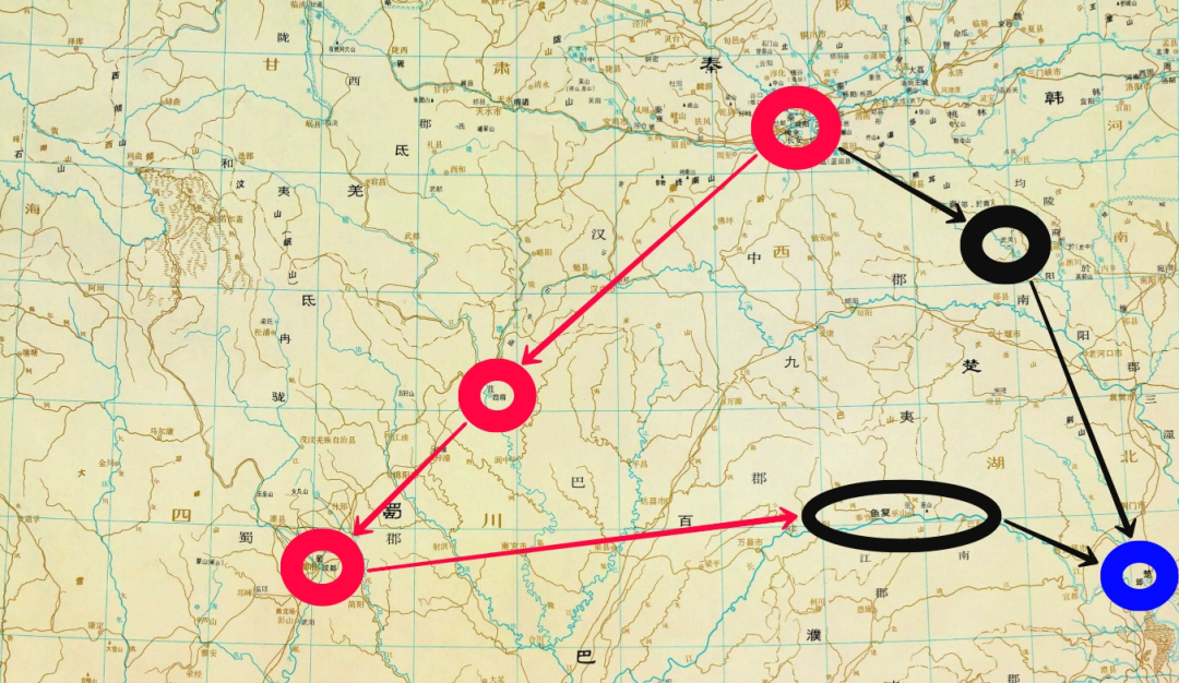 太平年間,秦國提取蜀地的財富充實財政,和楚國爆發戰爭時,秦軍則從武關、三峽出兵兩路,用大縱深、大穿插、大包圍的戰略夾擊楚國腹地。