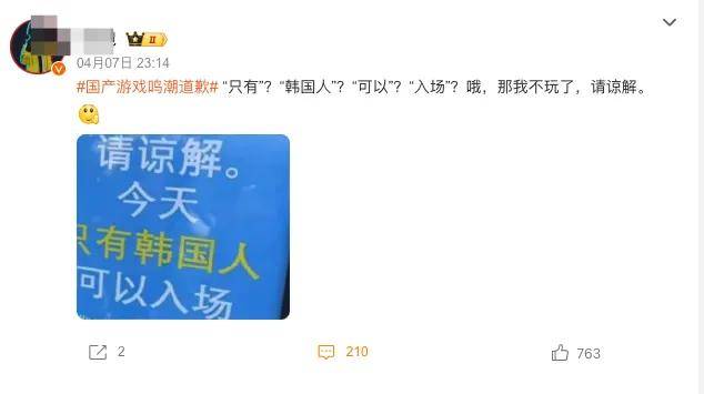 但小柴也是萬萬沒想到,一家遊戲公司,做了一款國產遊戲,但它竟然在韓國搞活動的時候,用極其醒目的中文,豎起了一塊「僅韓國人可以入場」的牌子……