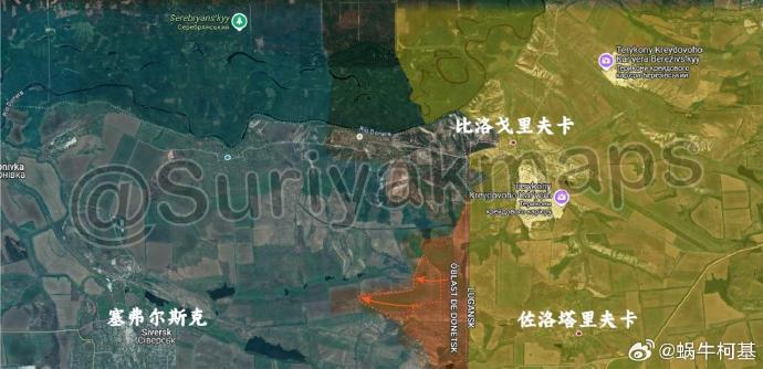 3、塞弗爾斯克:俄軍不斷攻佔上卡緬斯克以北白山周圍的陣地,並接近完全控制這一戰略要地。