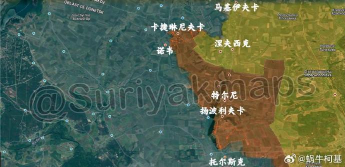 2、紅利曼:俄羅斯軍隊在諾韋東北取得新的進展,控制了一系列防禦工事,而卡捷琳尼夫卡被其佔領。同時,俄羅斯軍隊控制了托爾斯克北郊的養魚場,部隊得以進入該地區北部陣地。