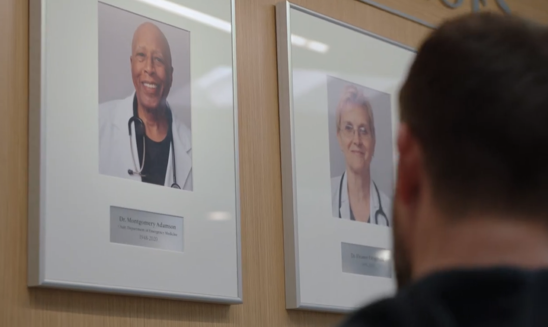 走進急診科時,員工的照片牆前,他停頓了一秒。