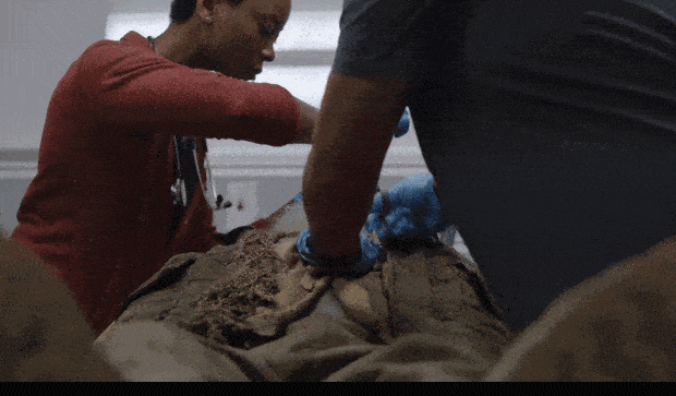 新來的實習生,一個在看到鮮血淋漓的傷員後暈了過去。
