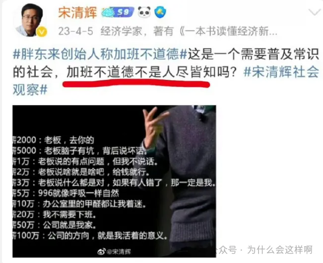 這絕非孤立事件。早在2024年,就有所謂學者攻擊胖東來"利潤分配過多破壞商業規則"。而今宋清輝的表演,不過是學術精英集團對勞動者權益系統性圍剿的延續:他們用"核心競爭力"的學術黑話消解服務價值,用"流量炒作"的道德大棒否定高薪正當性,用"民粹煽動"的政治污名踐踏羣眾選擇。當一家企業用真金白銀提升員工福祉時,這些"經濟學家"的反應不是歡呼社會進步,而是如鬣狗般撕咬——這赤裸裸暴露了其學術外衣下的資本打手本質。