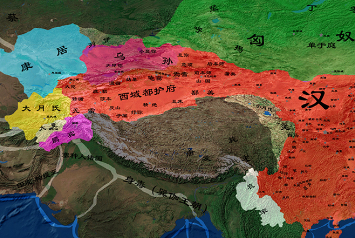 公元前164年,西漢派遣張騫出使西域,開闢了影響深遠的絲綢之路。又經過百餘年的經營,西漢終於在公元前60年設立西域都護府,正式將西域納入中國版圖。