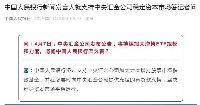 今天上午開盤前,央行破天荒發了個通告,説支持匯金公司在A股市場掃貨,如果有必要,會提供再貸款支持。