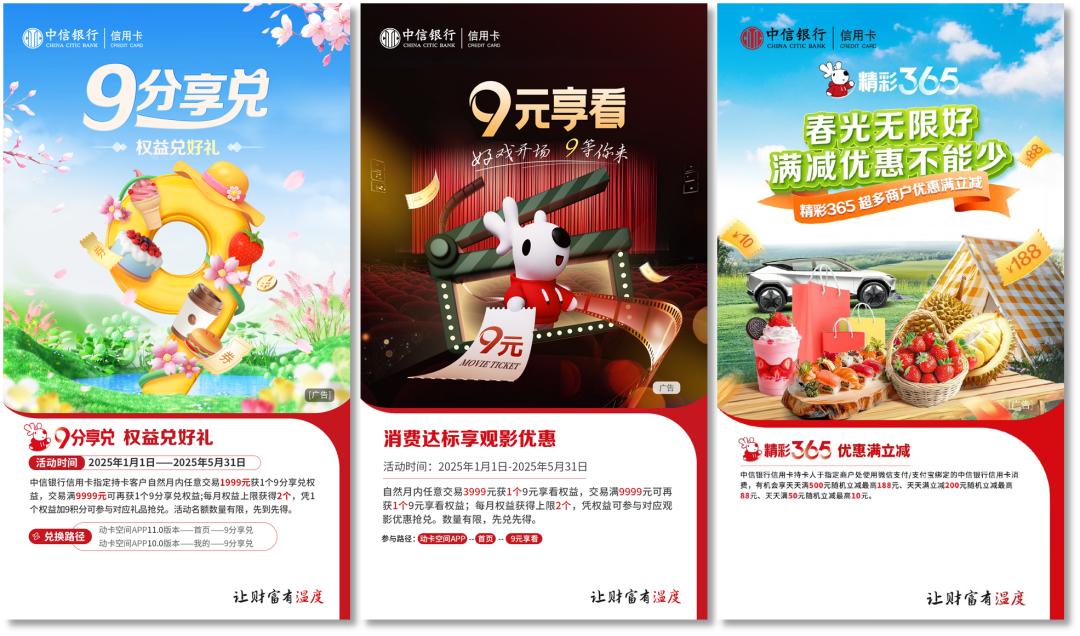 與此同時,中信銀行信用卡緊扣消費市場需求,深耕“食住行娛購”等民生消費場景,以品牌消費活動為抓手,強化場景獲客,優化金融服務體驗,激發消費新活力。一方面,以場景驅動高質量獲客,為更好服務日常民生剛需、日常消費場景,中信銀行信用卡推出為美食達人量身定製、享指定美食商户15%返現的“i吃卡”;聚焦“高鐵+旅遊”趨勢、享高鐵票及高鐵訂餐15%返現的“愛行卡”;服務居家生活體驗、享生活繳費15%返現的“愛家卡”等特色產品。另一方面,深化場景生態建設,持續開展三大品牌活動“9分享兑”“9元享看”“精彩365”,圍繞“食住行娛購”深入推進特色商户生態建設,以支付滿立減、代金券、平台到店優惠等產品組合,做強用户消費體驗,截至報告期末,全國合作商户品牌超6000個,覆蓋門店超40萬家,活動參與客户約1200萬户,上線商圈近1500個。