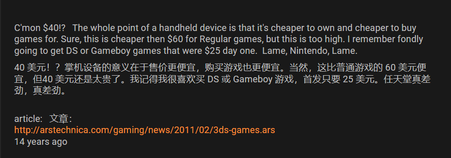 在十幾年前的3DS時代,大部分任天堂商店裏的遊戲標準售價為40美元,原因在於掌機主要面向休閒玩家和年輕羣體,為了提高市場接受度遊戲定價通常更為親民——儘管彼時的遊戲售價相較於DS或是Gameboy時代已經貴了很多。
