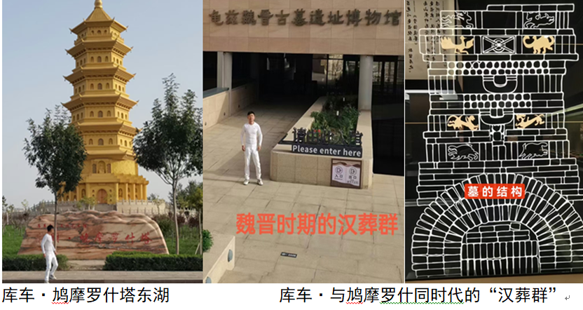 時光飛逝,2007年,庫車友誼路開挖地下街時,偶爾挖出一個與鳩摩羅什同時代的“漢葬羣”——魏晉古墓羣。其規模之大,令人咂舌。難怪,鳩摩羅什小時候就會説第三種語言,因為他從小就有漢語言環境。