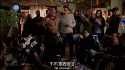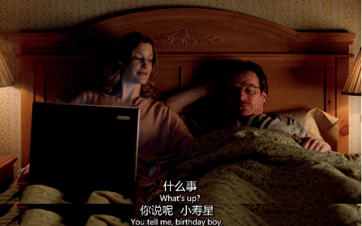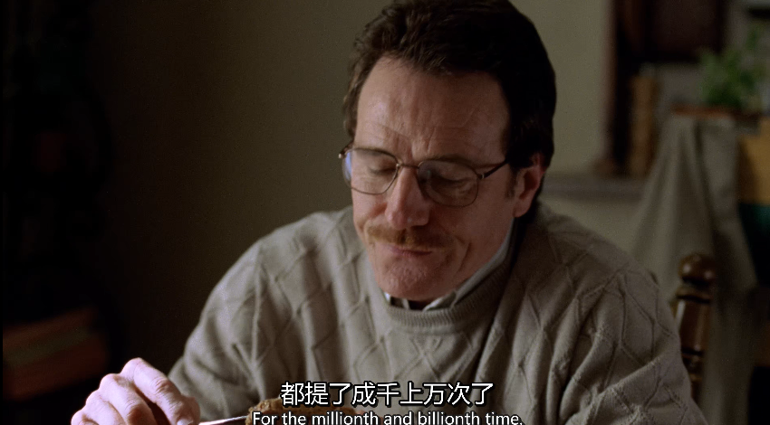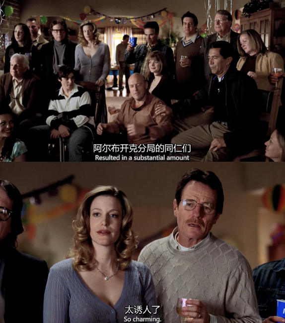 發病前的生日派對上,妹夫漢克摟着老白,端杯敬酒,並向罵人一樣誇獎他:
