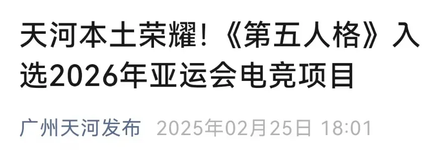 廣州網易自研的遊戲《第五人格》則入選2026年亞運會電競項目,成為本屆亞運會唯一入選的非對稱對抗類電競項目。