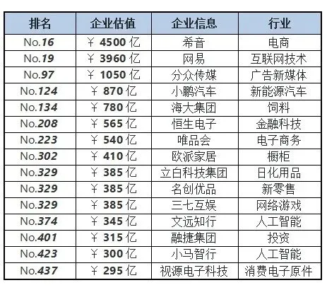 更值得留意的,是這次《胡潤中國500強》中的兩份子榜單。