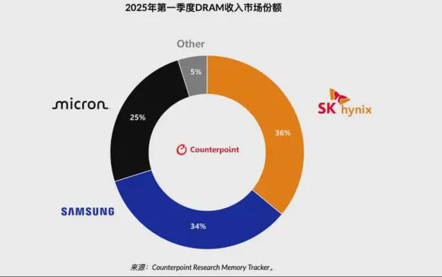 根據Counterpoint Research的Memory Tracker數據, SK海力士首次超越三星電子,以36%的市場份額位居全球DRAM收入榜首。