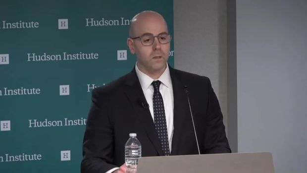 ▲白宮經濟顧問委員會主席米倫7日在智庫哈德遜研究所的活動上發表講話。(圖源:觀察者網)