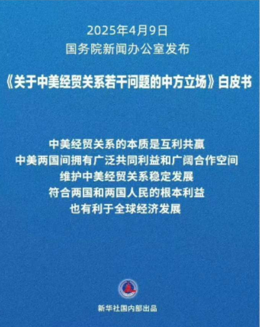 玩笑歸玩笑,中國還是一本正經的發佈了白皮書,中國聲稱美國以關税等為威脅、要挾的限制措施是錯上加錯,再次暴露了美方典型的單邊主義、霸凌主義本質,既違背市場經濟規律,更與多邊主義背道而馳,將對中美經貿關係產生嚴重影響。中方已根據國際法基本原則和法律法規,採取必要反制措施。