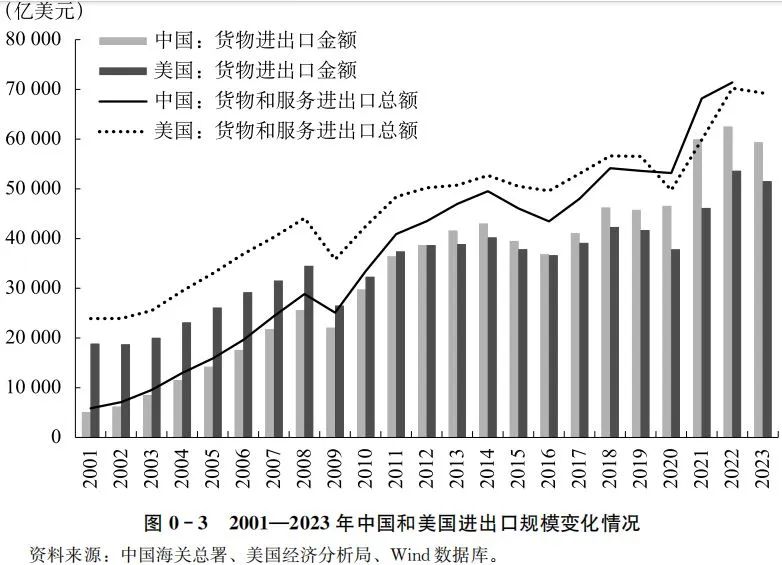 中國一直格外重視科技的作用,相關投入和產出均取得了十足的進步。加入世界貿易組織(WTO)以來,中國研發支出的規模及其佔GDP比重一直保持正增長。中國研發支出規模從2001年的125.95億美元增長到2021年的4335億美元,增加了33倍;研發支出佔GDP比重也從2001年的0.94%增長到2021年的2.43%(見下表)。美國研發支出規模及其佔GDP比重一直處於世界領先地位,在規模上長期超過中、日、德三國之和,且這種差距在近年存在拉大的趨勢。相比日本和德國而言,中國研發支出佔GDP比重雖然較低,但研發支出規模在十多年前就已經超過它們,到2018年以後,甚至超過二者規模之和。從PCT國際專利申請來看,中國所佔的比重一直保持快速增長態勢,從2002年的0.92%增長到2023年的25.57%(見下圖)。近年來中國PCT國際專利申請不僅超過了美國,還超過了日本和德國之和。
