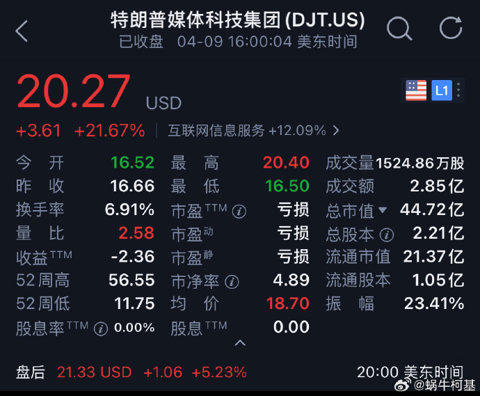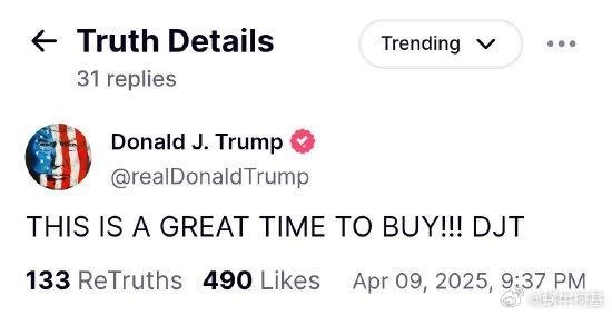暫停90天之前特朗普發了一文讓大家買DJT,自己放消息炒自己,真是白宮股神!_風聞