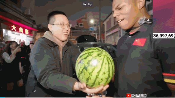 有粉絲怕Speed渴,特意送了Speed一個西瓜,並且親手為他打開。