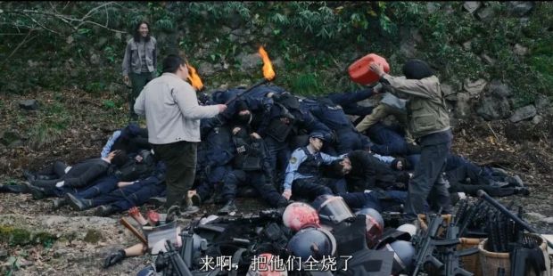 他們如野獸般不懼槍彈,用鐮刀和蠻力將整支機動隊屠殺殆盡,屍體堆積如山後點火焚燒,興奮高呼“吃烤肉了”。