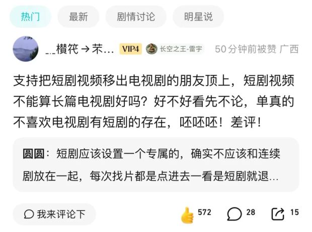 更重要的是,許多橫屏短劇並非像豎短一樣一次性放出全集,而是像長劇一樣需要追更,甚至於2025年起還設置了結局會員點映。如此種種,都被短劇愛好者直斥“忘本”——追更摧毀了刷短劇的爽感,人家短劇觀眾也沒有記住前面劇情等更新的習慣。