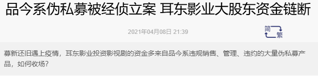 在疫情期間,電影製作停滯,導致品今系旗下的影視投資項目資金斷鏈。