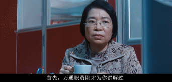 你看,當她在看視頻時,再一次聽都到了“風險”時神情不安,用喝咖啡將自己的不安一同嚥了下去。