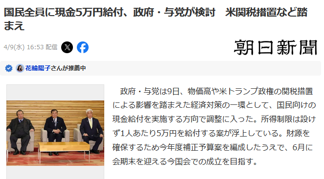 重磅!日本政府又要發錢了!每人4萬到10萬,不設限制!_風聞