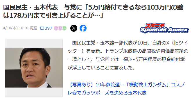 自民黨內部提出每人發4~10萬日元。還有爆料説每個人發5萬日元,也有人提出要發10萬日元。