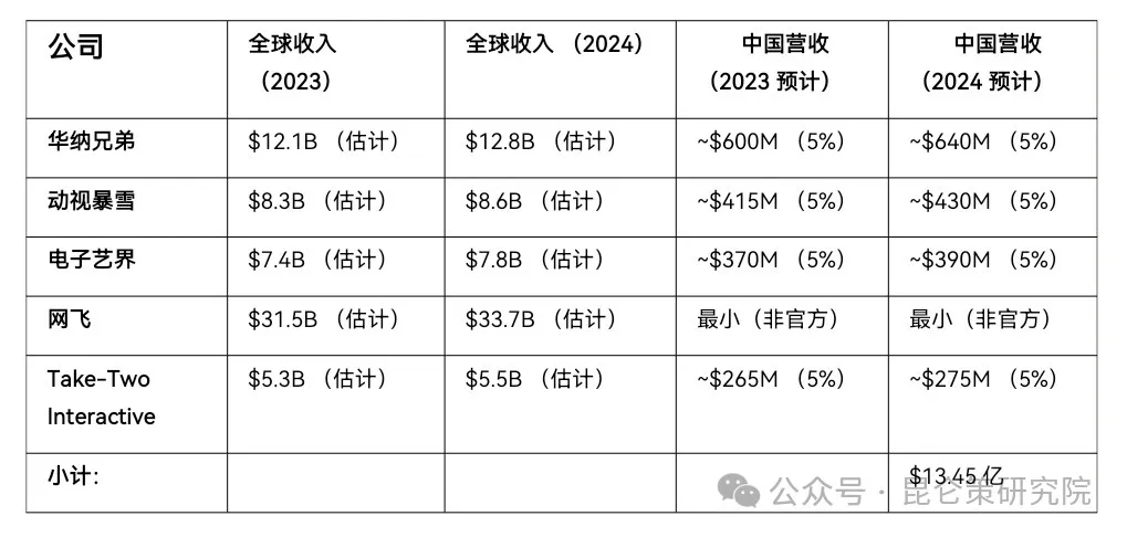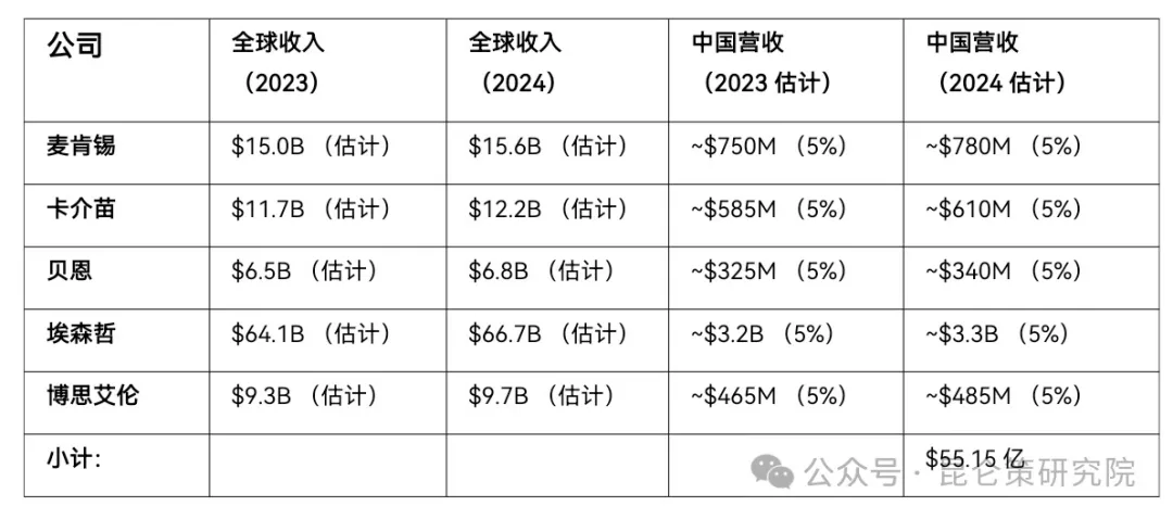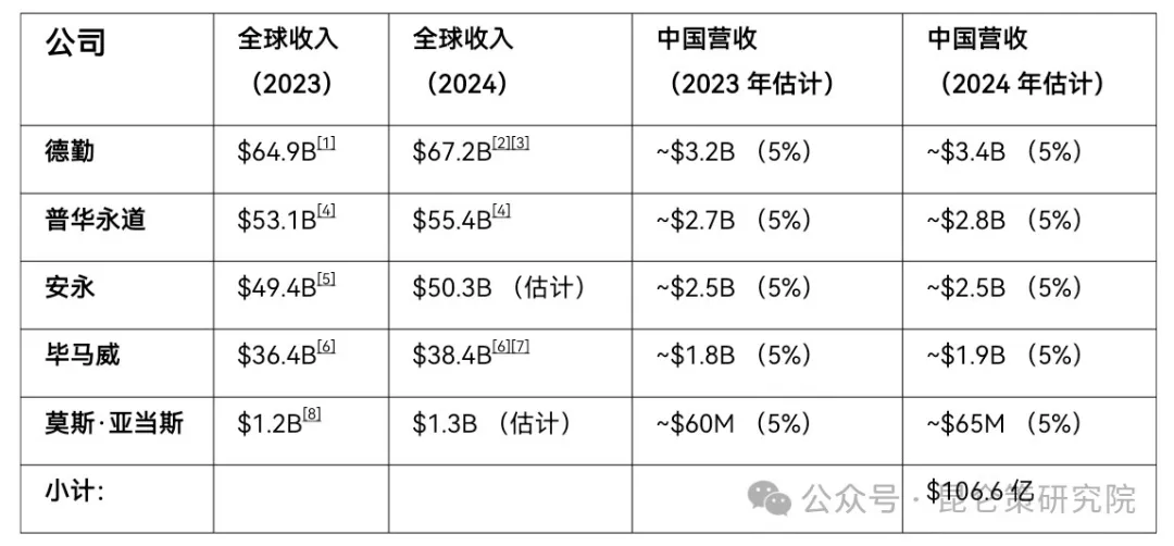 附錄:美國服務行業的50家公司在華2023和2024 兩年的營收情況