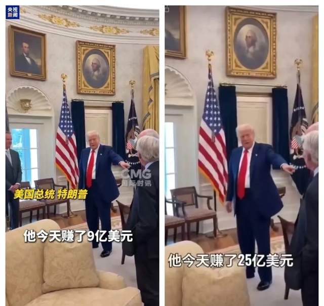 特朗普也是太高興了,隨着他對“對等關税”的開打和暫停,美股經歷了最大過山車,他高興地在辦公室宣佈:這是嘉信理財主席查爾斯·施瓦布,他今天賺了25億美元。然後他又手指着另外一個人説:他賺了9億美元。