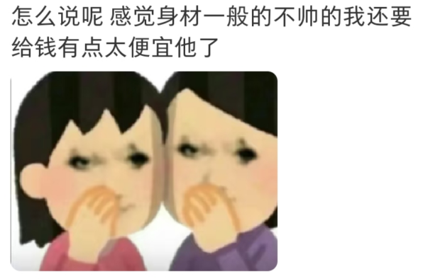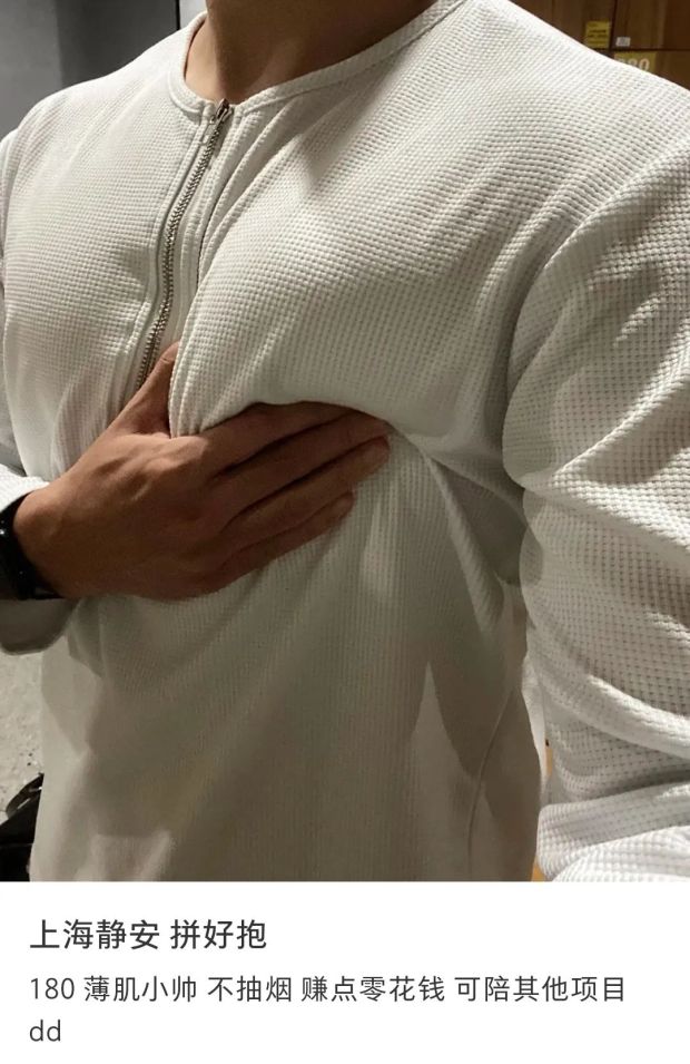 提供服務的男性也需要明確市場價位表,對自己身材和顏值有自信的,開價可以更高;如果只對顏值和身材其中一項有譜,那遵循市場價50或開放低價就好;像你這種條件的, 那隻能叫“Free Hug”免費擁抱。