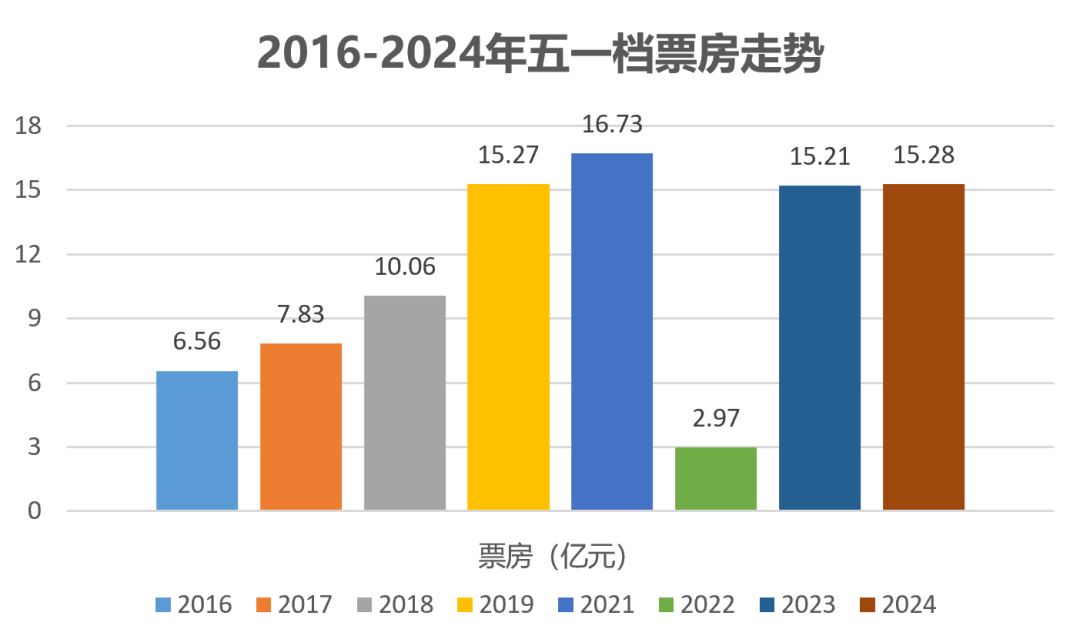 例如在2019年,在五一檔前一週上映的漫威電影《復仇者聯盟4》,力壓檔期其他影片,以12.22億的檔期票房,拿下五一檔冠軍,並基於五一假期首次調整至4天的時長優勢,將五一檔的大盤票房拉至15億以上。後來,五一假期進一步拉長至5天,而檔期票倉規模基本在15億的維度穩定下來。