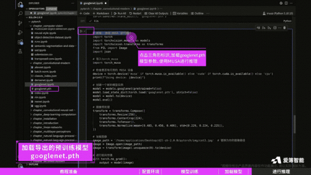 過程中可以看到“加載圖像”、“推理預測”和“顯示預測類別”等結果: