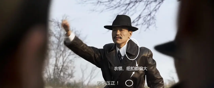 卻在大銀幕上暴露了現代機器縫線的西裝,和60年後才被髮明的塑料紐扣。