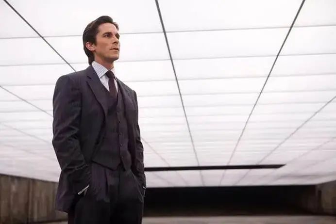 對比諾蘭《蝙蝠俠》中年布魯斯穿着的面料順滑得體、商務氣質的西裝。