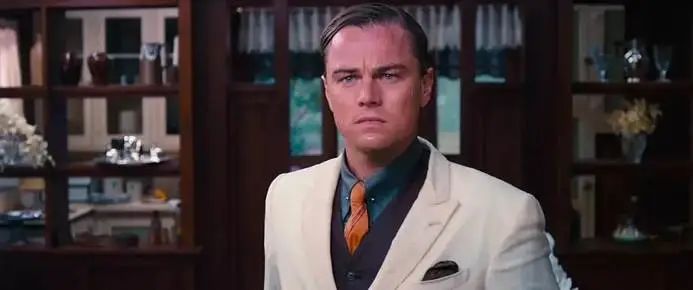 《了不起的蓋茨比》中,小李子飾演的蓋茨比始終穿着淺色的西裝。
