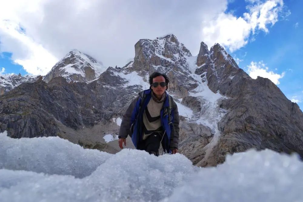 在麗江街頭,他偶然看到公交車上的一張雪山海報,海報上畫着潔白的、巍峨的山峯,別人告訴他,那是梅里雪山,雪山上還有冰川。