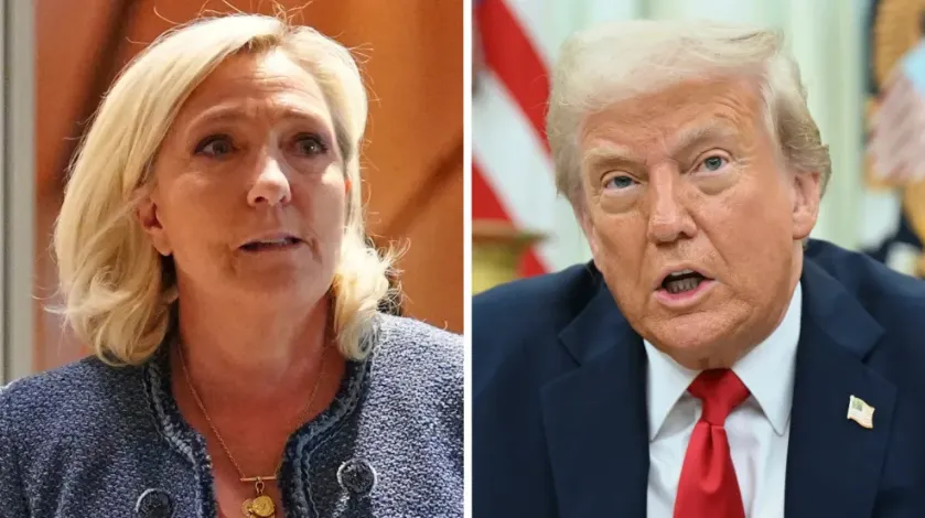 瑪麗娜·勒龐(左)與美國總統特朗普。(圖源:外媒)