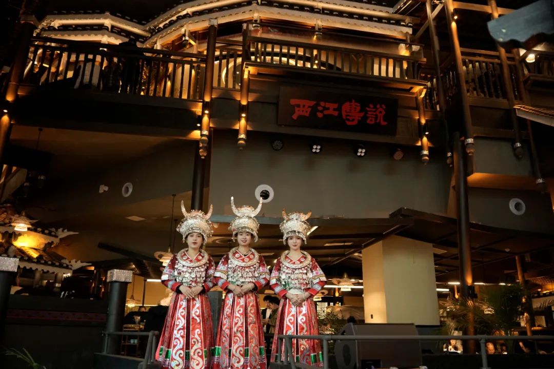 “西江傳説花果園店的打造可謂是傾注了大量心血,投入了約 1800萬資金,佔地規模達 3800 平方米,歷經整整半年時間才得以完工。在設計過程中,我們毫不吝嗇地將大量苗家元素融入其中,把極具特色的苗侗建築羣,像那高聳威嚴的鼓樓、錯落有致的吊腳樓,一股腦兒地‘搬’進了繁華都市。” 楊景勇先生娓娓道來。