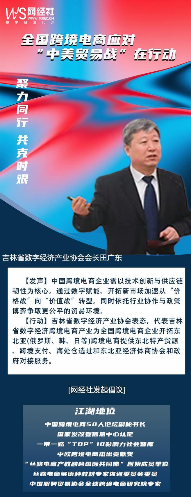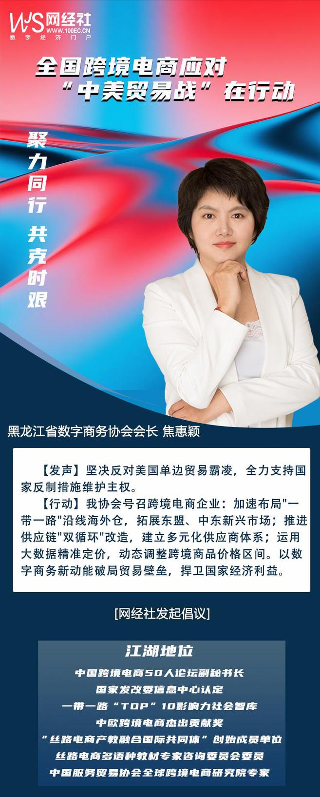 **【行動】**我協會號召跨境電商企業:加速佈局"一帶一路"沿線海外倉,拓展東盟、中東新興市場;推進供應鏈"雙循環"改造,建立多元化供應商體系;運用大數據精準定價,動態調整跨境商品價格區間。以數字商務新動能破局貿易壁壘,捍衞國家經濟利益。